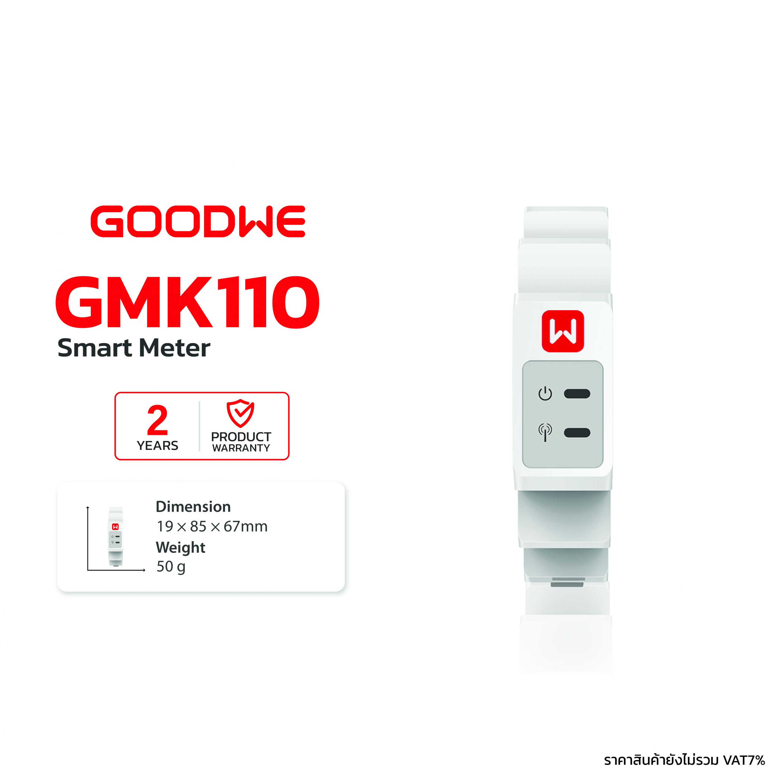Với thiết kế nhỏ gọn (rộng chỉ 19 mm), lắp đặt trên thanh DIN-rail, GMK110 có giao tiếp RS-485, hỗ trợ biến dòng (CT) tỉ lệ 120A:40mA và khả năng truyền thông tới 1 000 m — giúp tích hợp và truyền dữ liệu về hệ thống giám sát của GoodWe hoặc hệ thống IoT khác. Thiết bị có độ chính xác lớp 1 (Class 1) cho năng lượng tác dụng, chỉ bảo đảm sử dụng cho mục đích giám sát chứ không thay thế công tơ của công ty điện lực.